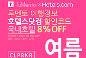 호텔스닷컴 4월 할인코드 8% 할인 TuMento8 쿠폰 국내 호텔예약 (0) | 2020.04.01 |