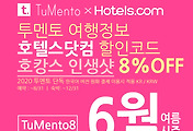 호텔스닷컴 할인코드 8% 쿠폰 TuMento8 (2020년 6월 - 7월) (0) | 2020.06.03 |