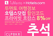 - 호텔스닷컴 9월 할인쿠폰 8% 코드 TuMento8 (예약:~12/31, 숙박:~12/31, KR/KRW, 투멘토 단독 진행. 투멘토 전용링크에서만 적용, 전세계, 체인호텔제외) ★★★★★