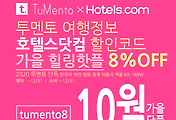 호텔스닷컴 10월 할인코드 8% 쿠폰 tumento8 적용 11월 가을시즌 혜택 (~12/31) (0) | 2020.10.01 |