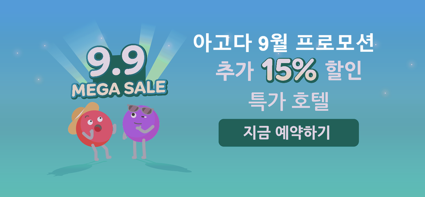 아고다 9월 할인코드 9.9 메가세일 15% 할인 특가호텔 Agoda MEGA SALE 2021 (~9/9) 바로가기