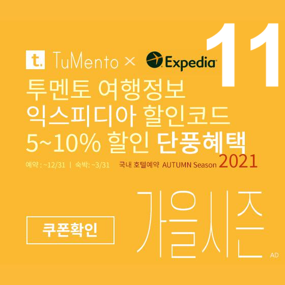 익스피디아 11월 할인코드 단풍시즌 5% 쿠폰 Expedia code coupon 2021 November (~12/31) 바로가기
