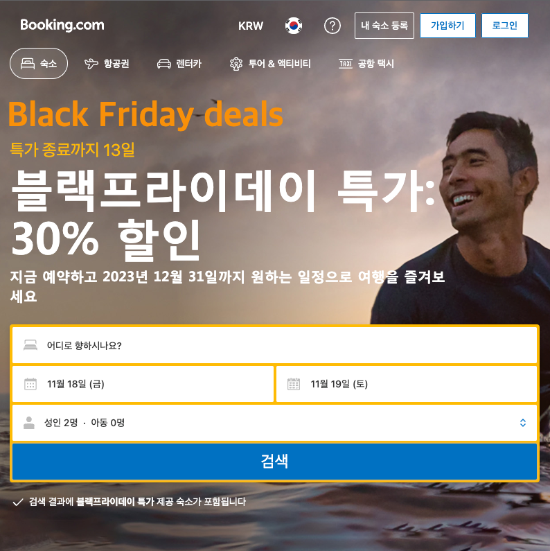 블랙프라이데이 호텔예약 찬스~ 부킹닷컴 블프 시작!!