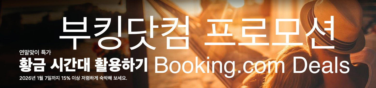 부킹닷컴 10월 프로모션코드 15% 할인쿠폰 12월 연말맞이 휴가특가 호텔예약 Booking.com Promo Deals 2025 FALL (~12/31) 바로가기