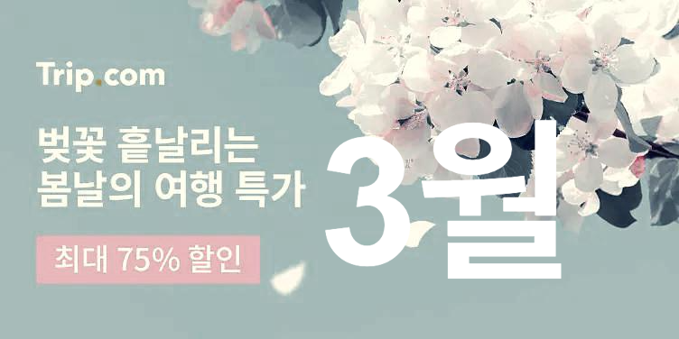 트립닷컴 3월 할인코드 화이트데이 호캉스 커플여행 국내호텔 쿠폰 봄날 벚꽃 여행특가 2021 (~4/10) 바로가기
