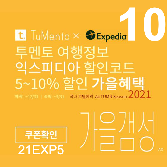 익스피디아 10월 할인코드 가을시즌 5% 쿠폰 Expedia code coupon 2021 October (~11/30)