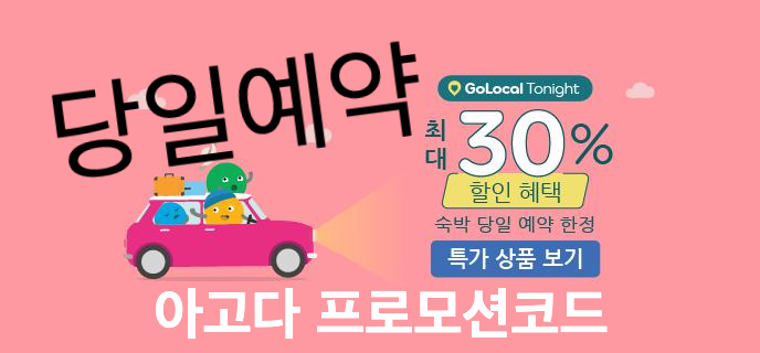 아고다 10월 프로모션코드 30% 할인 숙박 당일예약 한정 혜택 Agoda GoLocal Tonight 2021 October (~12/31) 바로가기