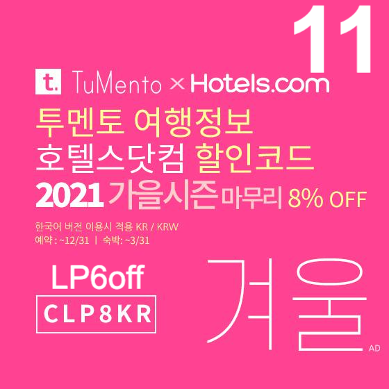 호텔스닷컴 11월 할인코드 6% 쿠폰 LP6off 단풍나들이 호텔예약 2021